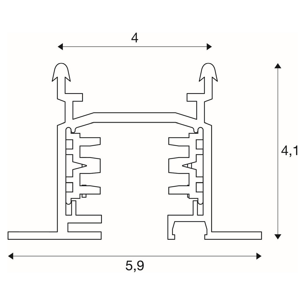 Die Einbauschiene kann einfach an Federclips gehängt werden, die über pfeilförmige Profilierungen verfügen. Mit einer Belastbarkeit von bis zu 4 kg pro Meter können verschiedene Leuchten und Zubehörteile sicher angebracht werden.