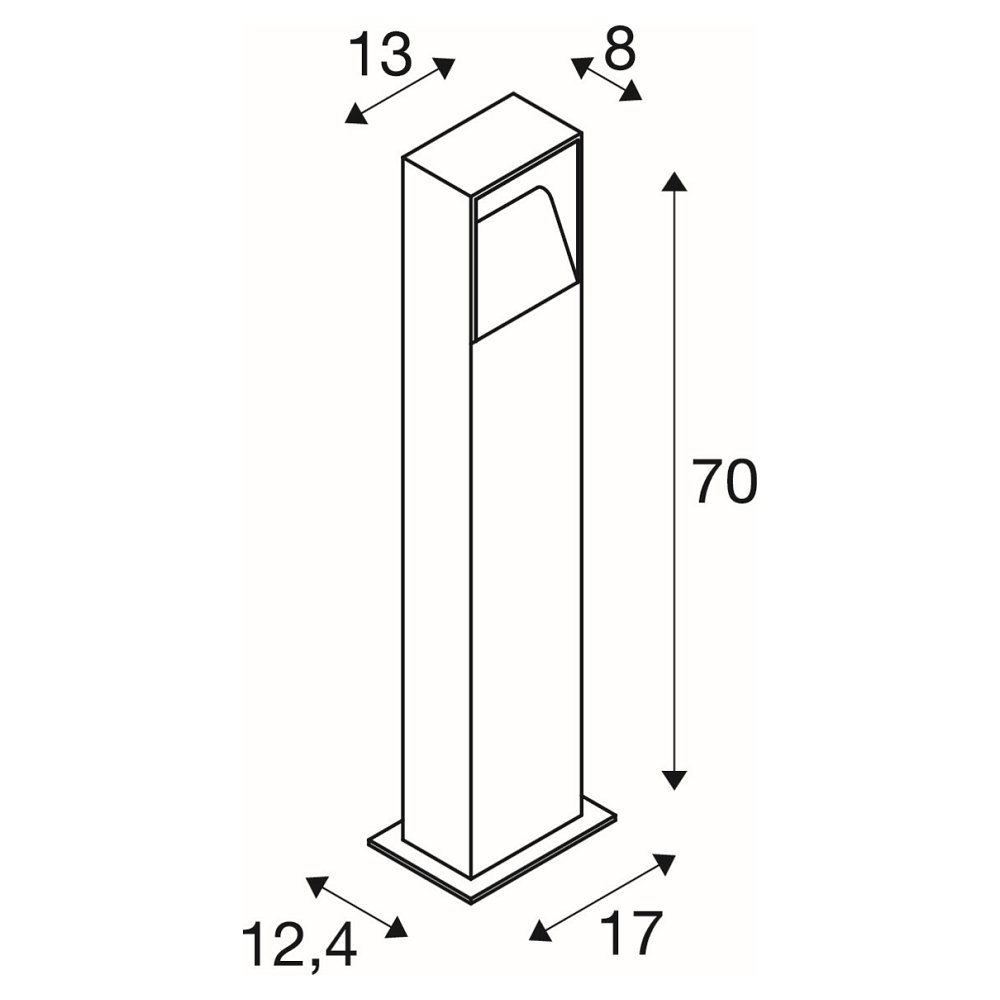 The LED floor lamp LOGS 70 impresses with its elegant, angular design and high-quality aluminum construction in anthracite color. With a height of 69.5 cm and compact dimensions, it is ideally suited to stylishly illuminate pathways, entrance areas, or terraces. The lamp is particularly durable thanks to its protection ratings IP65 against dust and jet water and IK04 against mechanical impacts such as vandalism or hail. This ensures that the lamp remains reliably functional even under demanding conditions.