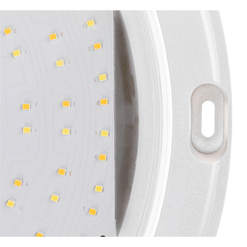 Die LED Aufbauleuchte ist einfach zu installieren und verfügt über einen herausnehmbaren LED Geräteträger sowie eine seitliche Kabeleiführung. Die Leuchte wird mit Zubehör wie einem Bewegungssensor, einem Dämmerungssensor, einem DIP-Schalter, einem Lichtfarbschalter und einem Treiber geliefert. Mit einem Gewicht von 2,384 kg und den Abmessungen Ø 36 cm x 9,2 cm ist die Leuchte kompakt und robust.