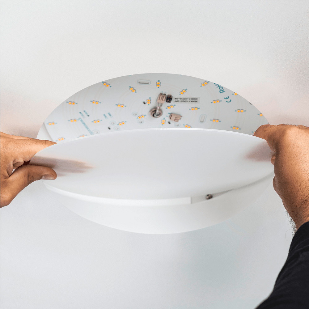 Die Deckeneinbauleuchte hat einen Einbaudurchmesser von 29cm und lässt sich somit problemlos in Ihre Decke integrieren. Mit einem Abstrahlwinkel von 105° sorgt sie für eine gleichmäßige Ausleuchtung Ihres Raumes, ohne dabei zu blenden.