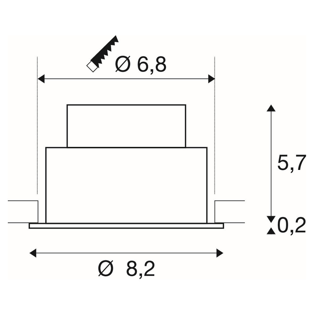Die Leuchte hat eine Größe von Ø 8,2 x 5,85 cm und kann mit einer Einbautiefe von 6 cm einfach in die Decke eingelassen werden. Das Gehäuse besteht aus hochwertigem Aluminium und ist besonders langlebig. Die mittlere Lampenlebensdauer beträgt 50000 Stunden.