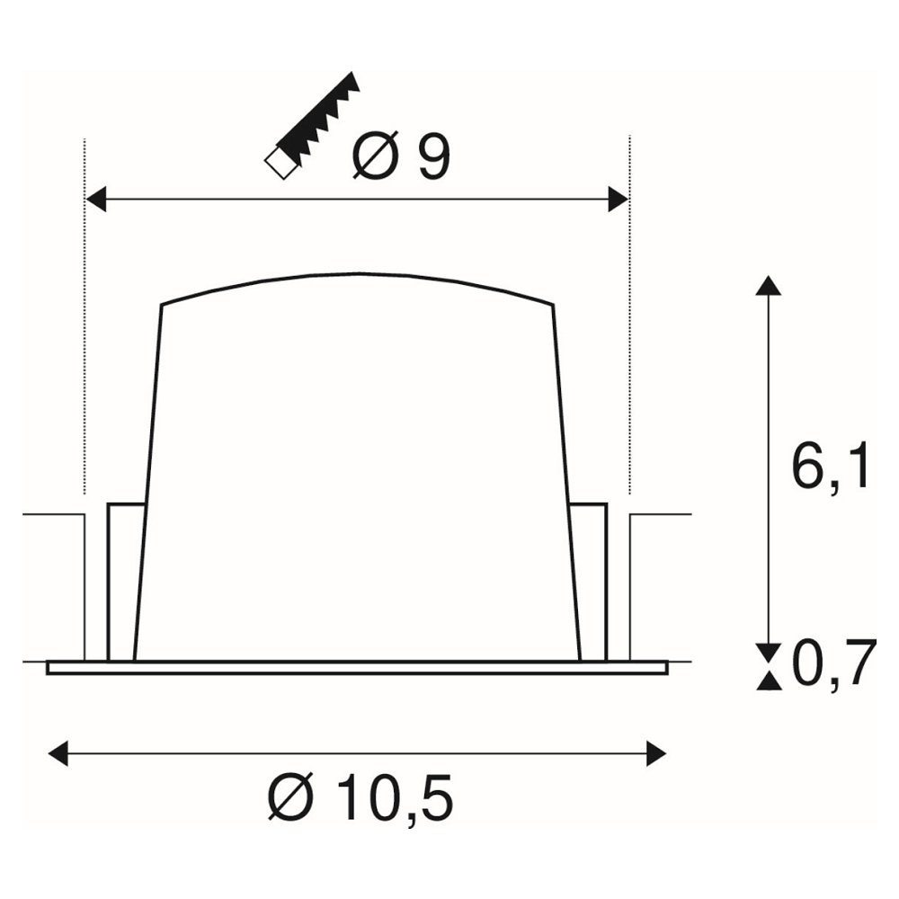 Die Deckeneinbauleuchte besteht aus hochwertigem Aluminium und Polycarbonat (PC), was sie robust und langlebig macht. Mit einer Größe von Ø 10,5cm und einer Höhe von 6,8cm passt sie unauffällig in jede Decke und sorgt für eine moderne Optik.