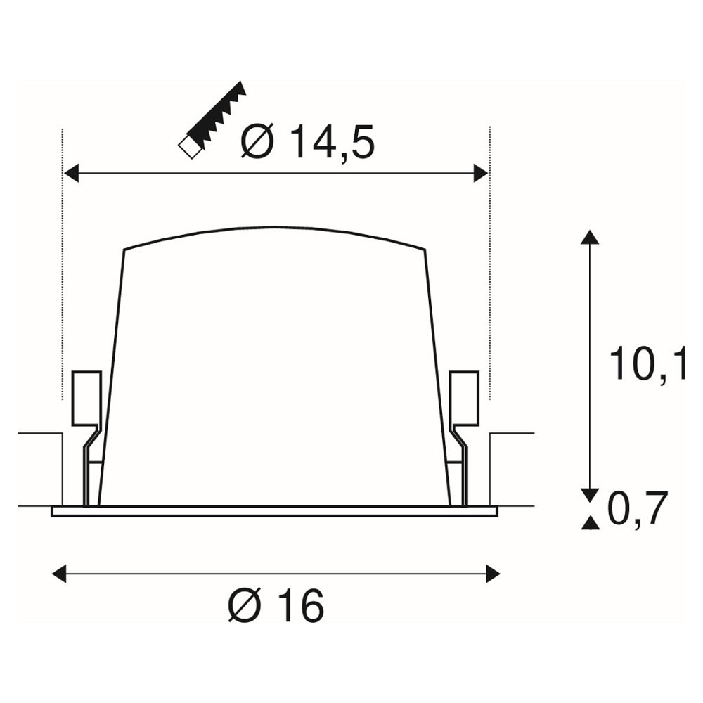 Die Deckeneinbauleuchte hat eine Größe von Ø 16 / H: 10,8 cm und eine Einbautiefe von 11,5 cm. Das Gehäuse besteht aus Aluminium und Polycarbonat (PC), was für eine lange Lebensdauer und Stabilität sorgt. Mit einem Gewicht von 0,66kg ist die Leuchte leicht zu installieren.
