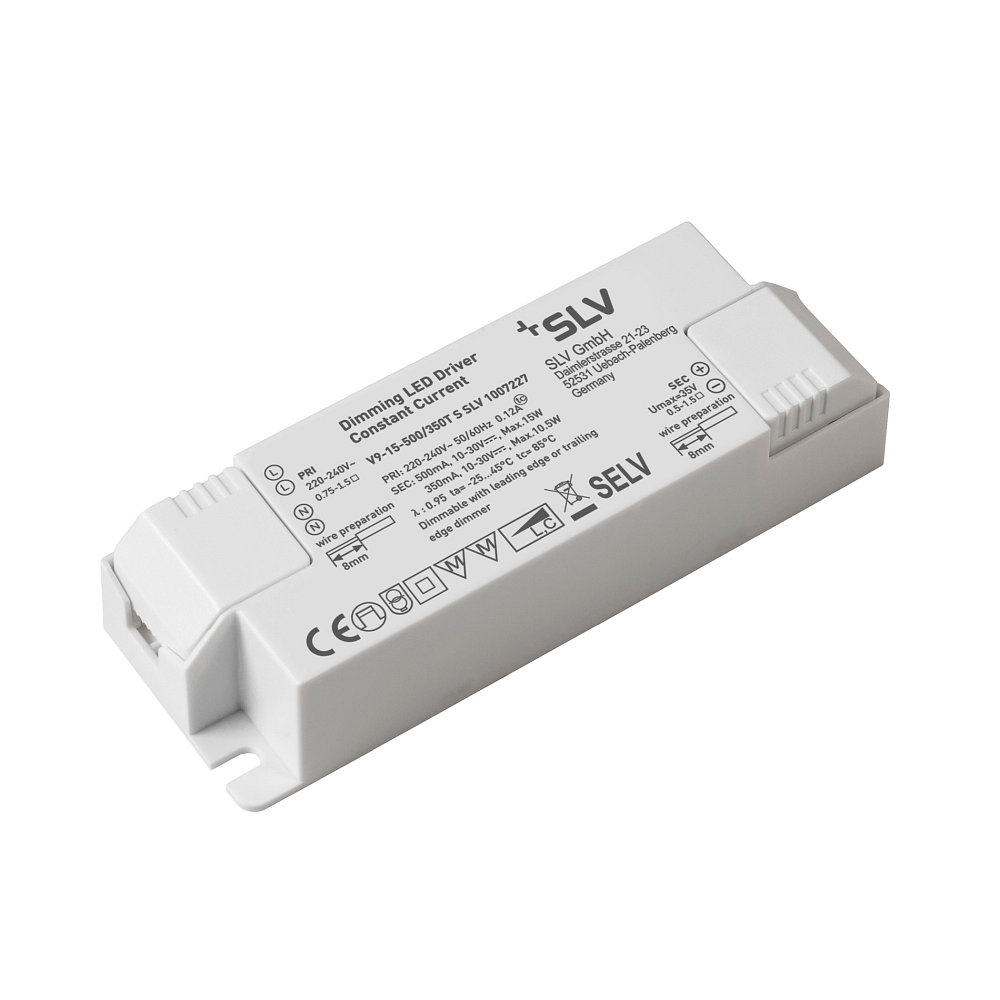 The LED driver has a mains frequency of 50/60Hz and a current consumption of 0.35/0.5A. The secondary voltage is 350/500 mA for optimal supply of your LEDs. With the SLV brand, you get a high-quality and reliable solution for your LED lighting.