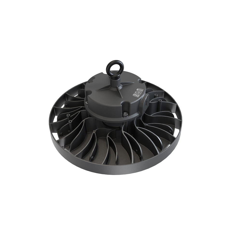 Das Gehäuse des Hallenstrahlers besteht aus hochwertigem Aluminium und Polycarbonat, das nicht nur für Stabilität, sondern auch für eine lange Lebensdauer von bis zu 80.000 Stunden sorgt. Die Schutzklasse IP65 garantiert zuverlässigen Schutz gegen Staub und Strahlwasser, während die IK08-Schlagschutzklasse den Strahler widerstandsfähig gegen Vandalismus und mechanische Einwirkungen macht. So bleibt die Beleuchtung auch unter anspruchsvollen Bedingungen stets funktionsfähig.