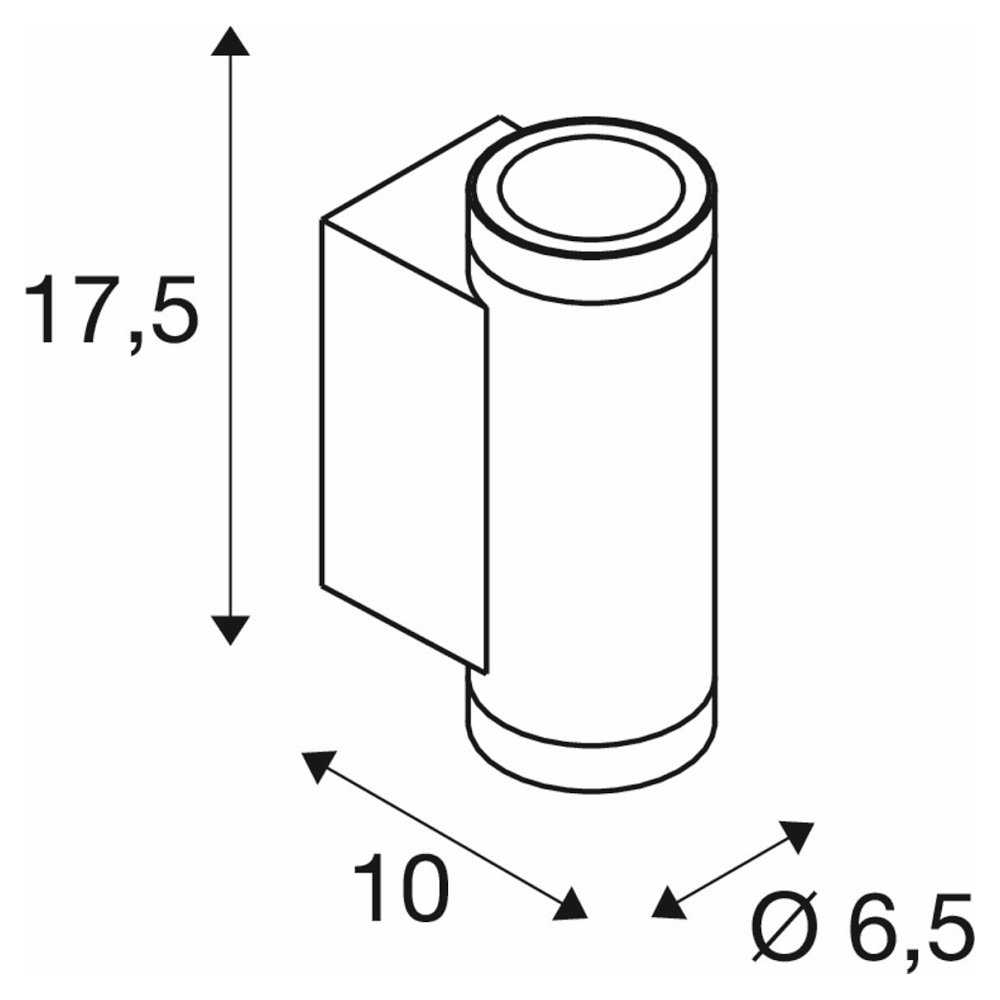 Die LED Wandleuchte HELIA PRO S UP/DOWN besticht durch ihr zylindrisches Design und eine Höhe von 17,5 cm. Mit ihrem schlanken, modernen Erscheinungsbild fügt sie sich harmonisch in verschiedene Umgebungen ein und sorgt für eine stilvolle Beleuchtung. Die Leuchte ist kompakt mit den Maßen Ø 6,5 cm und einer Länge von 10 cm, was sie besonders platzsparend macht.
