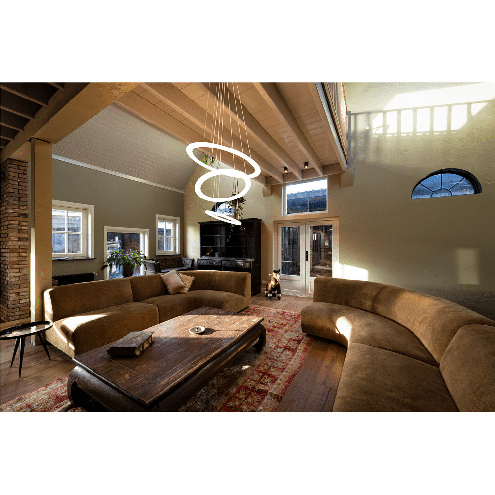 Die Pendelleuchte hat eine Leistungsaufnahme von 58W und einen Lichtstrom von 3500-3700lm. Mit einer Farbtemperatur von 2700-3000K erzeugt sie ein angenehm warmweißes Licht. Die LED Technologie sorgt für eine lange Lebensdauer von bis zu 50000 Stunden.