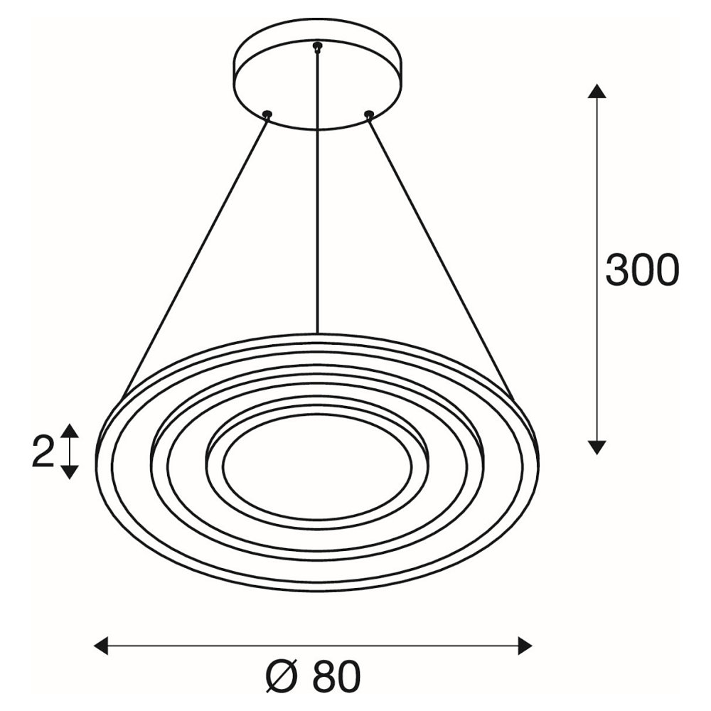 Die LED Pendelleuchte ONE FLAT TRIPLE ist ein elegantes Beleuchtungselement, das mit seinen Maßen von 80x80x80x2 cm eine moderne Atmosphäre schafft. Die Rosette hat einen Durchmesser von 30 cm und eine Höhe von 5 cm. Die Pendellänge von 300 cm kann bei Bedarf gekürzt werden.