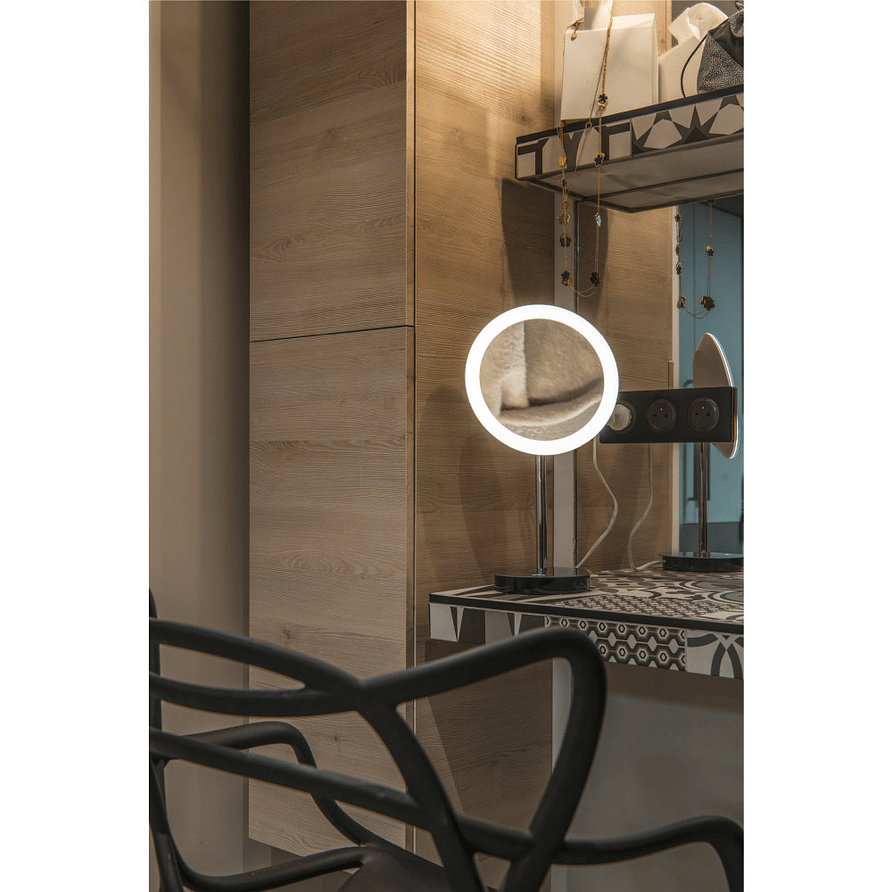 Der Kosmetikspiegel verfügt über einen Farbwiedergabeindex von 90Ra, der eine natürliche und detailgetreue Beleuchtung gewährleistet. Mit einer Leistung von 4,8W und einem Lichtstrom von 45/48/51lm ist die Tischleuchte zudem energieeffizient und langlebig.
