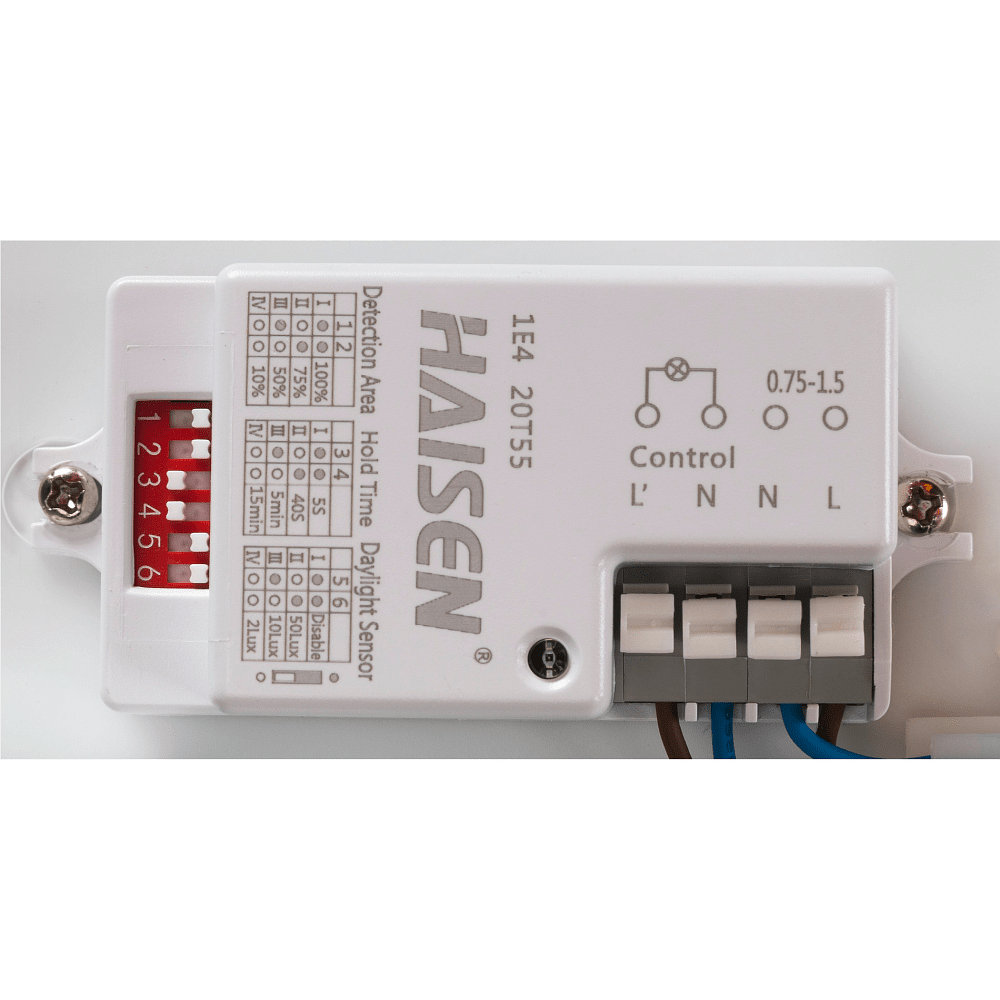 Version mit Integriertem Bewegungssensor (Frequenz 5,725GHz ... 5,875GHz, <0,5mW, verstellbar) und Dänmmerungssensor.
