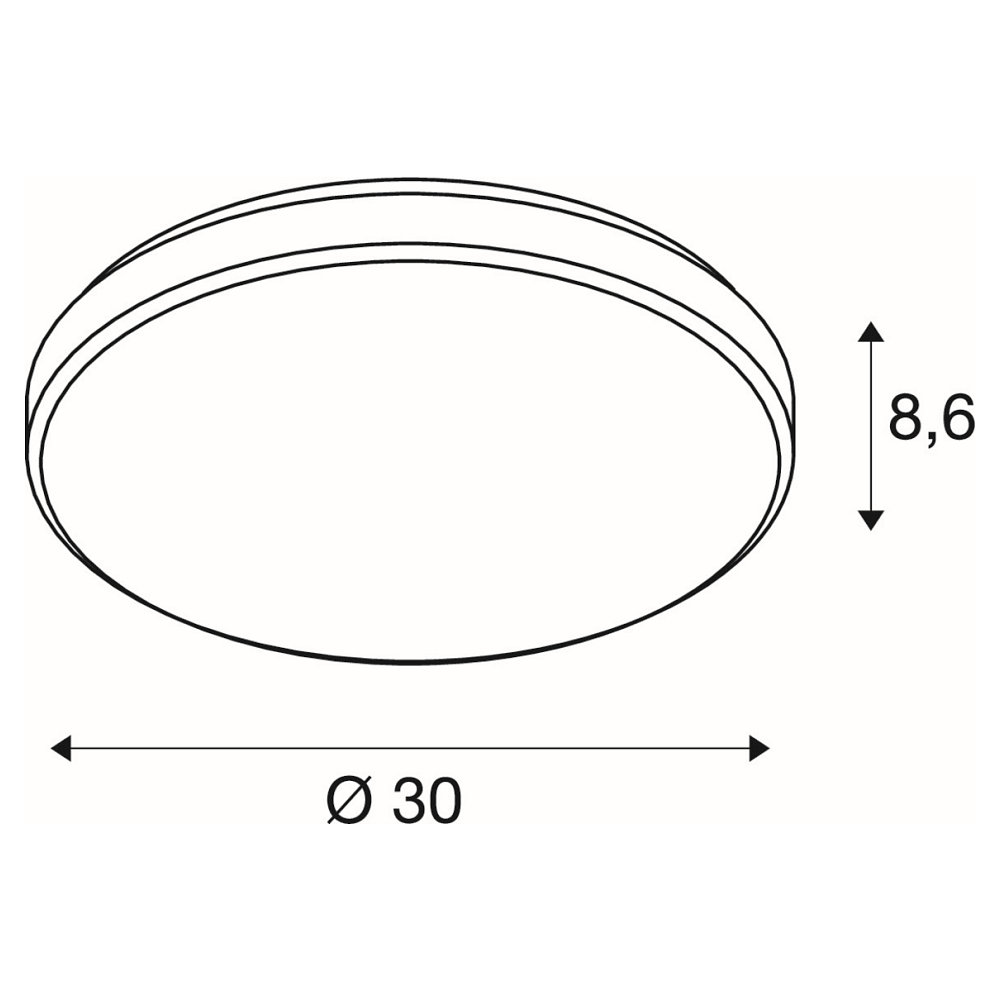 Die LED Wand- und Deckenleuchte MARONA mit Corona Effekt von SLV ist eine elegante und kontrastreiche Beleuchtungslösung für den Innenbereich. Mit einem Durchmesser von 30cm und einer Höhe von 8,6cm passt sie perfekt an Wand und Decke. Der großzügige Abstand zwischen dem Leuchtenschirm und der Montagefläche erzeugt einen remittierenden Corona-Effekt, der für eine besondere Atmosphäre sorgt.