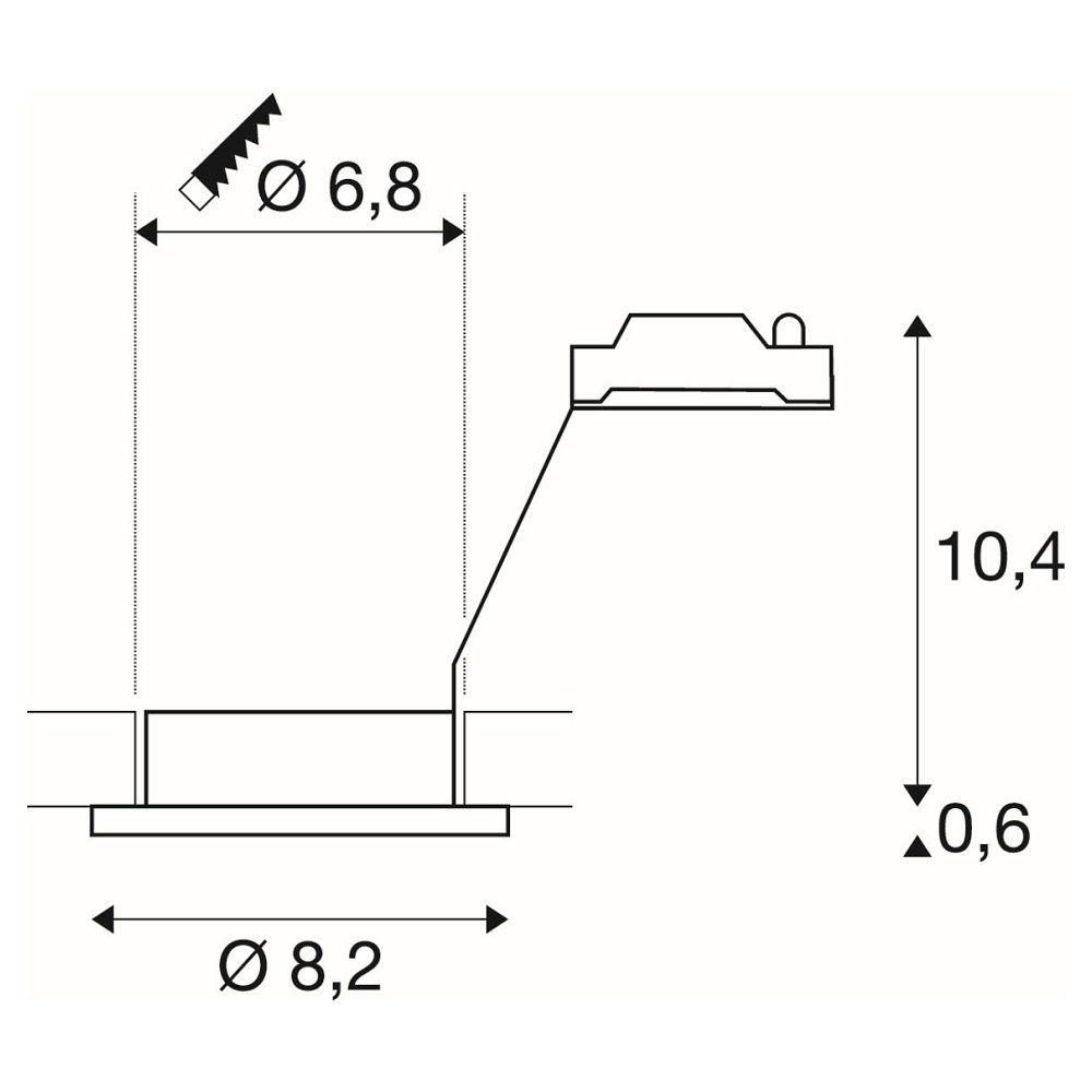 The luminaire operates with a supply voltage of 230V and is equipped with protection class 2, ensuring safe use. The IP65 protection rating guarantees comprehensive protection against dust and jet water, so the product functions reliably even in demanding environments. The installation opening has a circular diameter of 6.8 cm, allowing for uncomplicated and precise mounting.