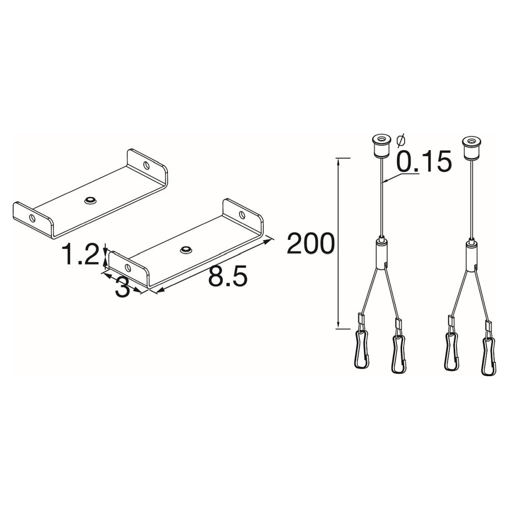 Mit den kompakten Maßen von 3 x 8,5 x 1,2 cm (Bügel-L x B x H) lässt sich die Y-Seilabhängung unkompliziert montieren und ermöglicht eine präzise Positionierung der Leuchte. Die mechanische Konstruktion gewährleistet eine sichere Fixierung der BATTEN FLAT P Lichtleiste, sodass diese stabil und zuverlässig nach unten ausgerichtet bleibt.